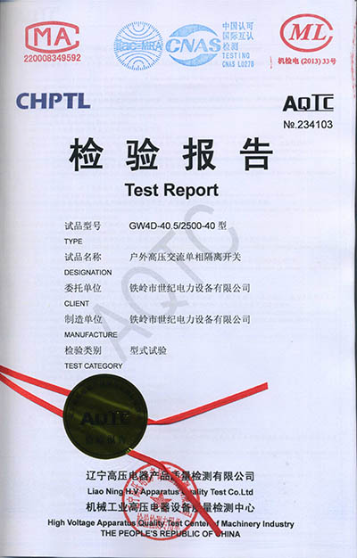 戶外高壓交流隔離開關(guān)檢驗(yàn)報(bào)告